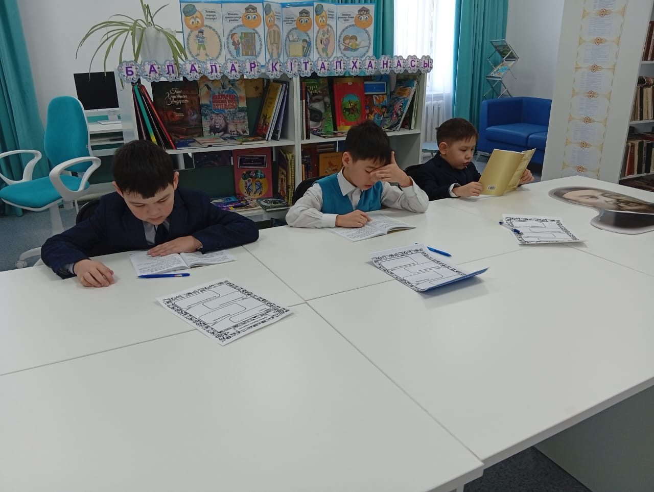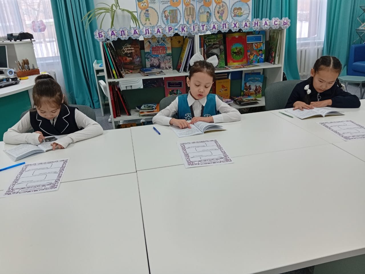 Үлкен үзілісте кітапханада бастауыш сынып оқушылары қысқа әңгімелерді оқып, оқығандарының мазмұнын айтып, өз пікірлерін білдіреді.
